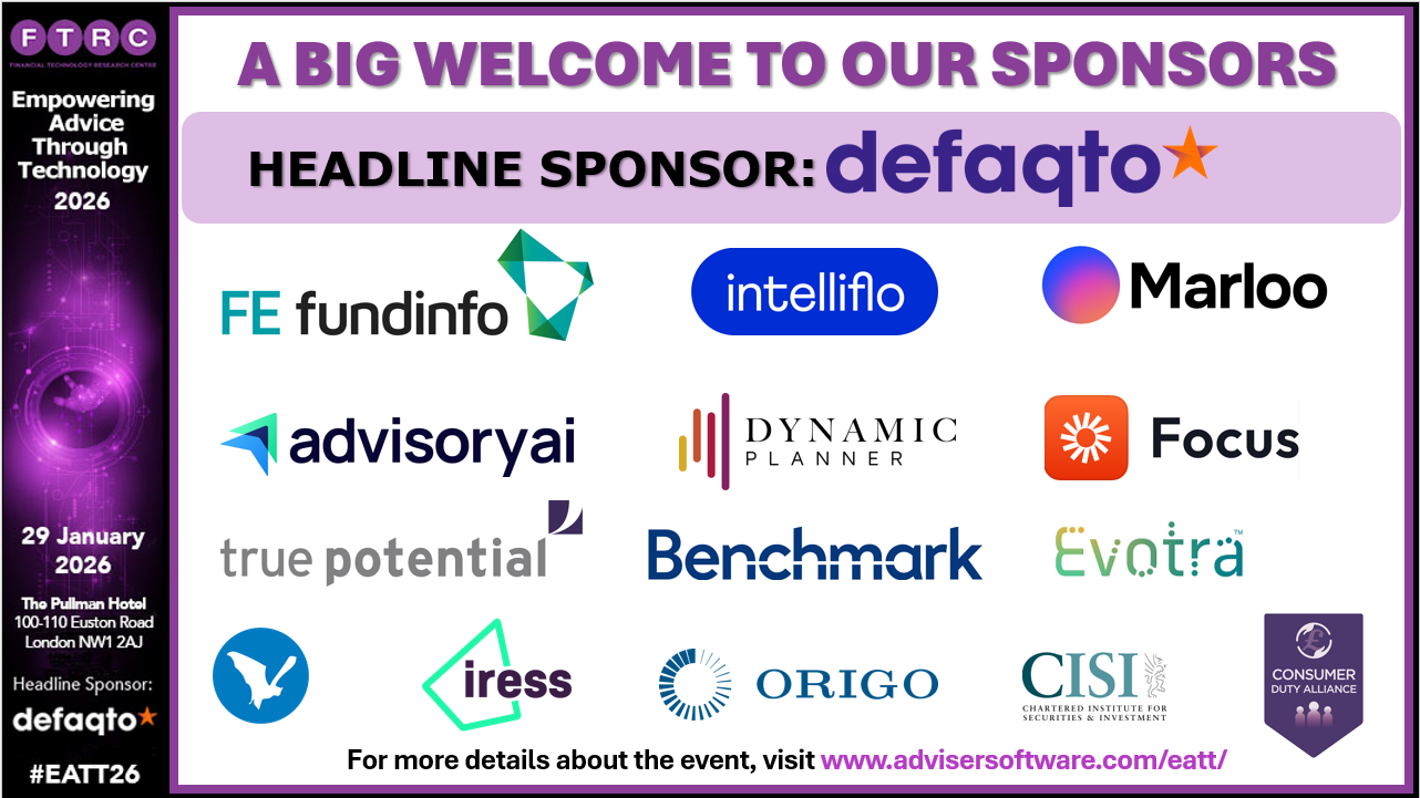 The “Empowering Advice Through Technology” (EATT) conference is a one-day event designed for financial advisers who want to leverage technology to improve their businesses. Next year’s event will be on Thursday 29 January at The Pullman Hotel, London.