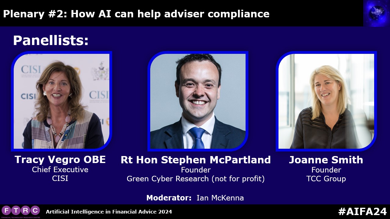 AIFA2024 Plenary 2 – How AI can help adviser compliance BACK TO CONFERENCE SESSIONS What is AIFA? Login or Register The AIFA2024 Conference Sessions are avilable for logged in users Are you already logged in? If you are and can't access this content please contact us to discuss available options! Speakers Learning Objectives Using AI to accelerate case checking and advice approvals. The role of AI in delivering and maintaining consistent advice standards. Using AI ethically, including avoiding human or machine bias. BACK TO CONFERENCE SESSIONS What is AIFA?